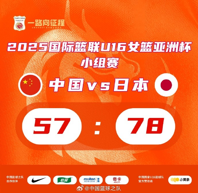 开场后日本率先找到手感取得领先,孙晗昀和孟家艺轮番冲击内线拿分帮助中国将比分反超。第二节上来李沅珊就命中三分,不过中国整体效率不高,日本多点开花追上比分,虽然李沅珊在日本追平比分后再中一记三分,但随后日本又是连得6分领先结束上半场。易边再战,日本延续攻势上来继续扩大优势,李沅珊回应三分止血,此后中国进攻端依旧命中率不高,日本内外开花将分差拉大到两位数。最后一节中国进攻端依旧没有能够打出起色,日本通过防守和冲击内线将分差继续拉大,中国追分无望,最终中国57-78不敌日本。